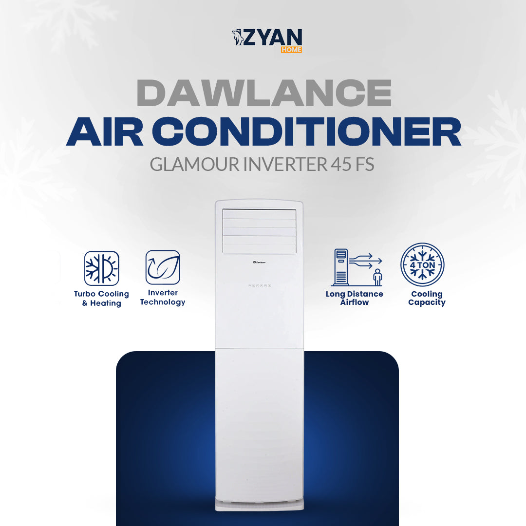 The Dawlance Floor Standing Glamour Inverter 45 FS is built for powerful year-round cooling and heating. Its inverter technology ensures energy efficiency, low-noise performance, and long-lasting durability for homes and offices.